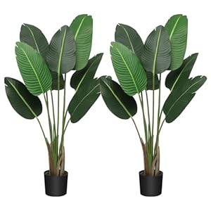 Two 4 Foot Artificial Silk Bird of Paradise Palm Tree Potted Plant,Fake Plants with 8 Trunks, 48 inches Fake Banana Leaf Plants with Pot for Home Decor Indoor Outdoor Living Room Office